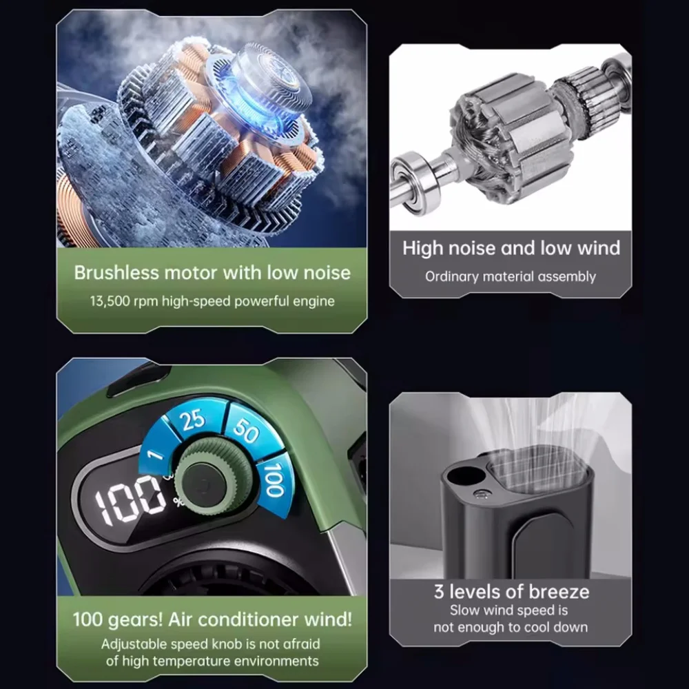 100-Level Stepless Speed: A Game Changer! Our waist fan features a cutting - edge 100 - level stepless speed regulation system. Unlike regular fans with limited speed options, it allows for ultra-precise wind speed tuning. Whether you're toiling away at outdoor jobs like weeding or taking it easy during a camping rest, you can effortlessly find the ideal wind strength for a cool and comfortable experience.